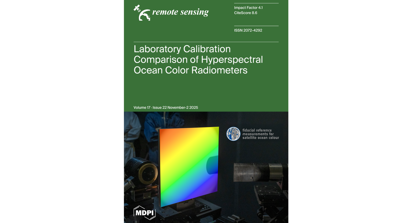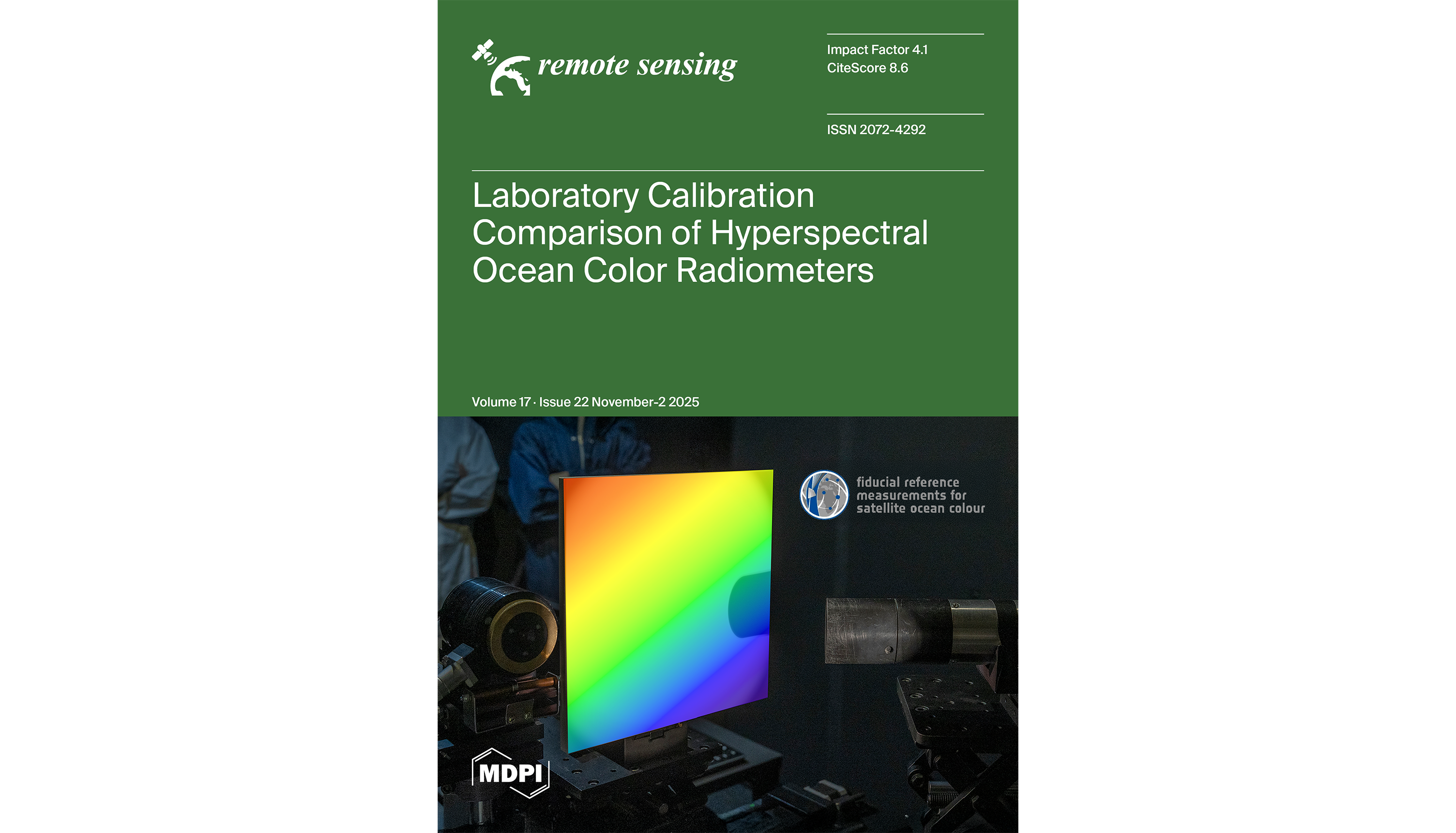 The cover of the journal illustrates how calibration uncertainty propagates across the ocean color observing community — visually highlighting the importance of harmonized radiometric standards.